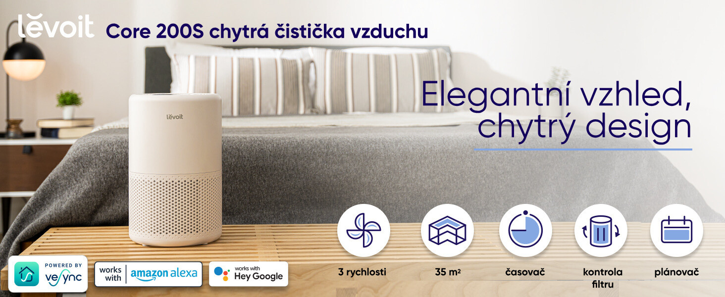 Chcete mít doma čistý vzduch jako prevenci před onemocnění horních dýchacích cest, nebo jste alergik nebo astmatik? Chytrá čistička Levoit CORE 200S Smart díky vysoce kvalitní 3 vrstvé filtraci s HEPA filtem a maximální cirkulaci vzduchu patentované technologie VortexairTM odstraní až 99,97 % škodlivých látek a nečistot, které byste jinak dýchali. Ovládaní čističky vzduchu je v skutku jednoduché přímo na displeji, nebo se nabízí ovládaní přes aplikaci na chytrých zařízeních Android nebo Apple (iOS). Čistička také může být dokonce ovládaná hlasem přes Alexu nebo Google Assistant. V noci oceníte noční režim a technologii QuietKEAPTM , díky které váš spánek nebude provozem čističky vzduchu rušen.
